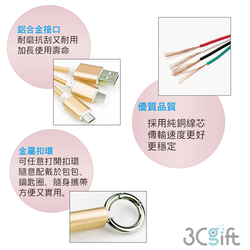 § 三合一USB充電頭:Lightning 8Pin USB / Micro USB / TYPE-C