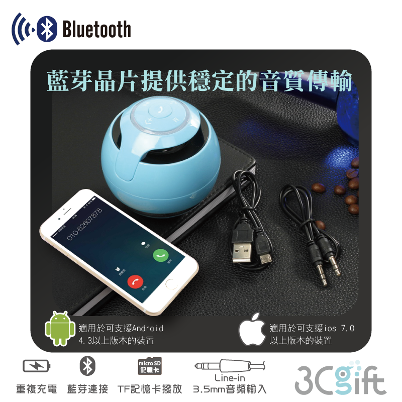 ♪ TF記憶卡、Line-in功能可外接其他音源