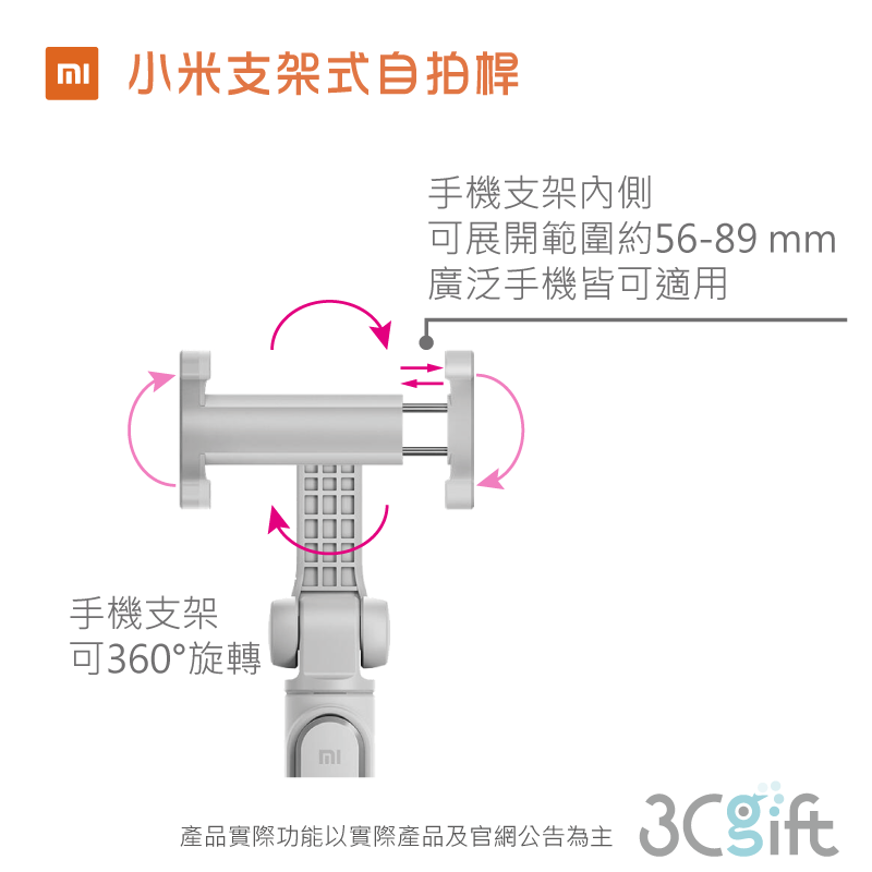 ✽ 手機支架內側可展開範圍約56-89 mm,廣泛手機皆可適用